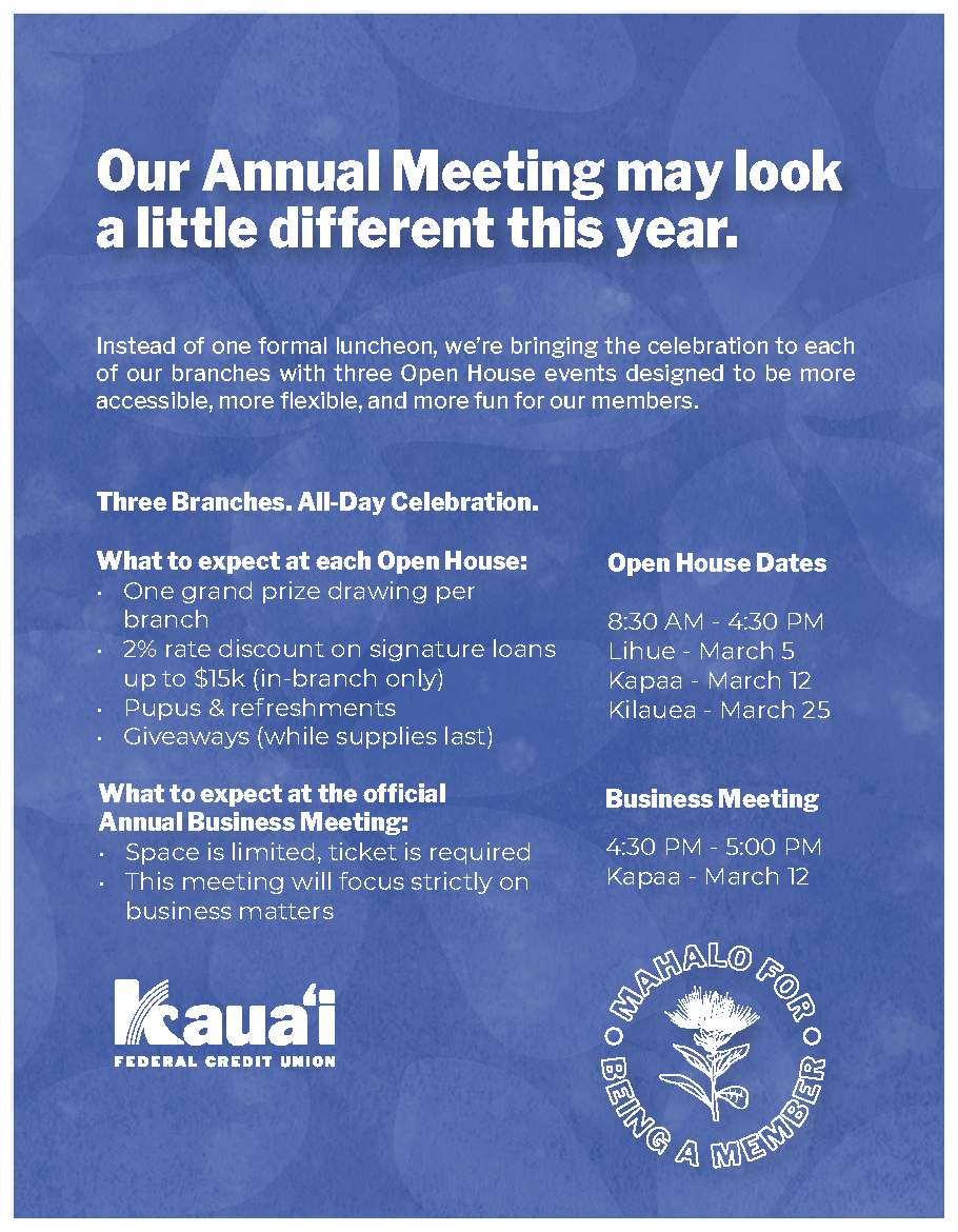 Aloha Kaua‘i FCU Members,