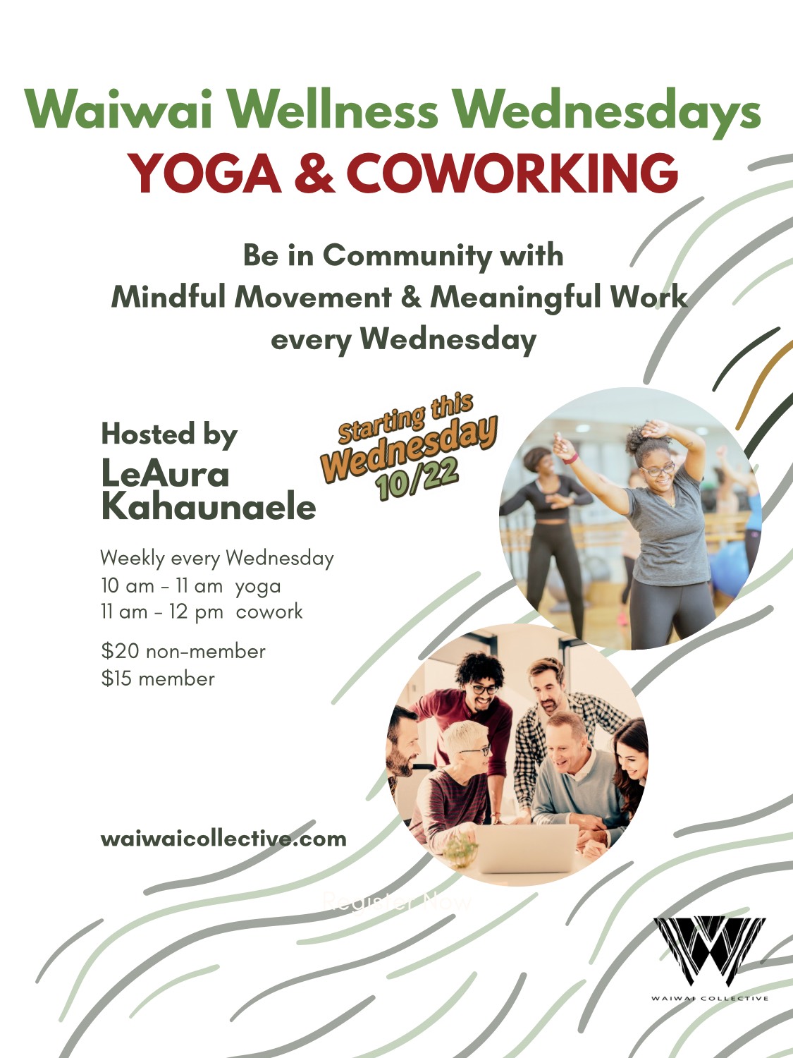 Kalukalu 4-1624 Kuhio Hwy Kapaʻa, Kauai, United StatesTIME: 10:00 am - 12:00 pm (Yoga 10 am -11 am; Cowork 11 am - 12 pm) LOCATION: Kalukalu 4-1624 Kuhio Hwy, Kapaʻa, Kauai FEATURING: Yoga inspired movement and coworking HOSTED BY: LeAura Kahaunaele ADMISSION: $15 Member rate; $20 non Member rate. Waiwai Collective kicks off a new series on Wednesday, October 22 from 10... View Article